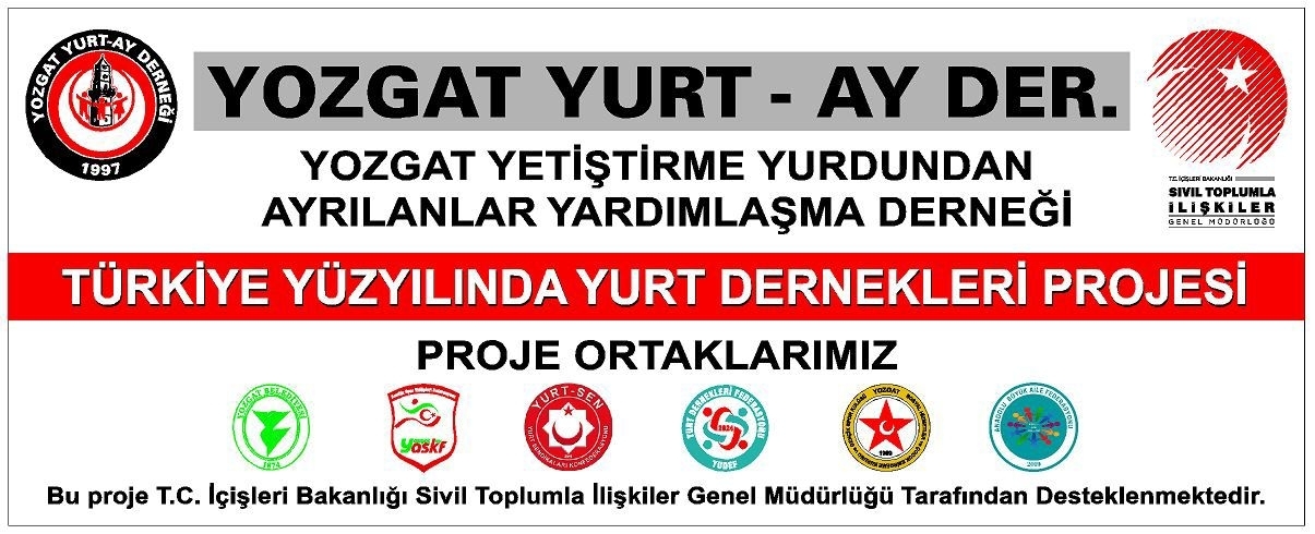 Yozgat Yetiştirme Yurdundan Ayrılanlar Yardımlaşma Derneğimiz tarafından hazırlanan ve İçişleri Bakanlığı Sivil Toplumla İlişkiler Genel Müdürlüğü tarafından desteklenen “Türkiye Yüzyılında YURT Dernekleri” Projesi’nin Tanıtım Toplantısı, Yozgat Aile ve Sosyal Hizmetler İl Müdürlüğü’nün ev sahipliğinde geniş bir katılımla gerçekleştirildi.
